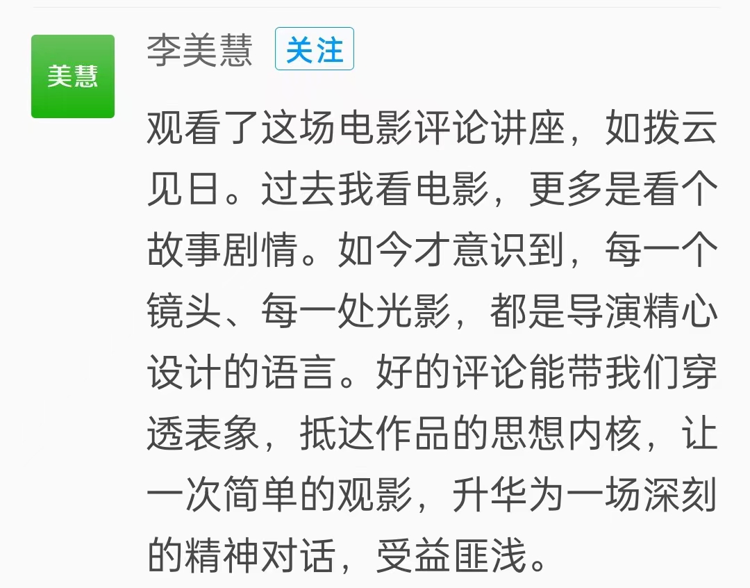 此次讲座内容充实、视角递进,贾老师以生动案例、深入浅出的讲解和丰富互动,将专业影像理论转化为易懂知识,既拓宽了同学们的艺术视野,又培养了其从空间建构角度解读影视作品的能力,成功实现“传递知识与引导深刻思考”的目标,获同学们广泛好评。