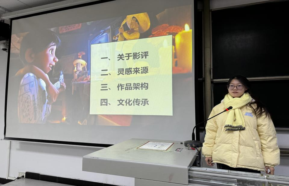 站在泰山科技学院育英书院的舞台之下,看着胡旭超同学攥着话筒的手不再发抖,看着她终于能从容说出《寻梦环游记》里的万寿菊花桥,是连接生死两界的桥梁,我忽然想起三个月前那个在经典电影赏析课堂主题辩论赛上,红着脸举起手的姑娘。那一刻,我知道,这场从课堂延伸到赛事的经历,实实在在地见证了一个学生在光影世界里的蜕变与成长。