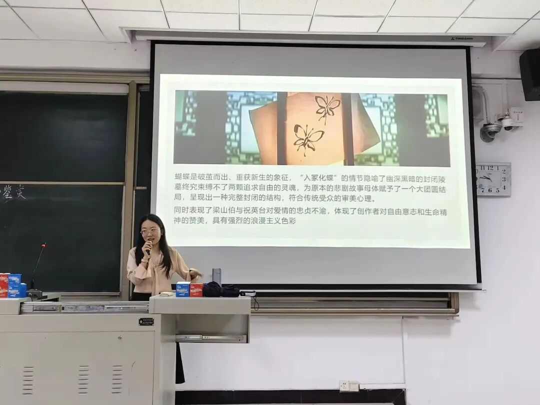 近日,通识教学部赵振滔老师(哲学专业)与电影评论中心杨增慧老师(电影专业)在6教202《美学漫步》课堂上联袂开讲,从美学与影视的双重视角深度解析中国四大民间故事之一《梁祝》。通过学科碰撞与艺术交融,这场双师授课为同学们带来了一场思想与审美的盛宴。