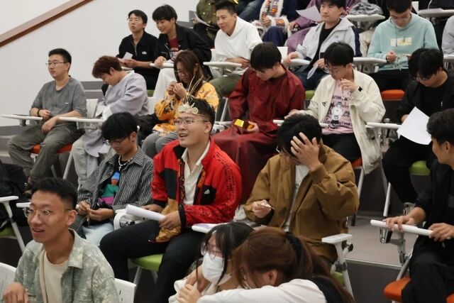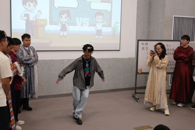 “鹅城百姓听好了!本县长上任三把火——第一把,免除三年苛捐杂税!”随着电影评论中心张振帅老师穿着长衫一声大喊,两位老师分别以“竞选者1号”与“竞选者2号”的身份登场。全班也被划分为三大阵营:支持土匪风1号老师的“男子军团”、支持斯文派2号老师的“亲信财阀团”,以及掌握最终裁决权的“鹅城仲裁团”。