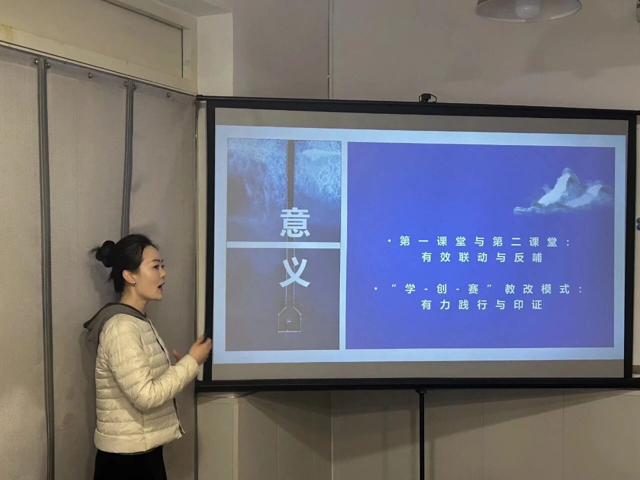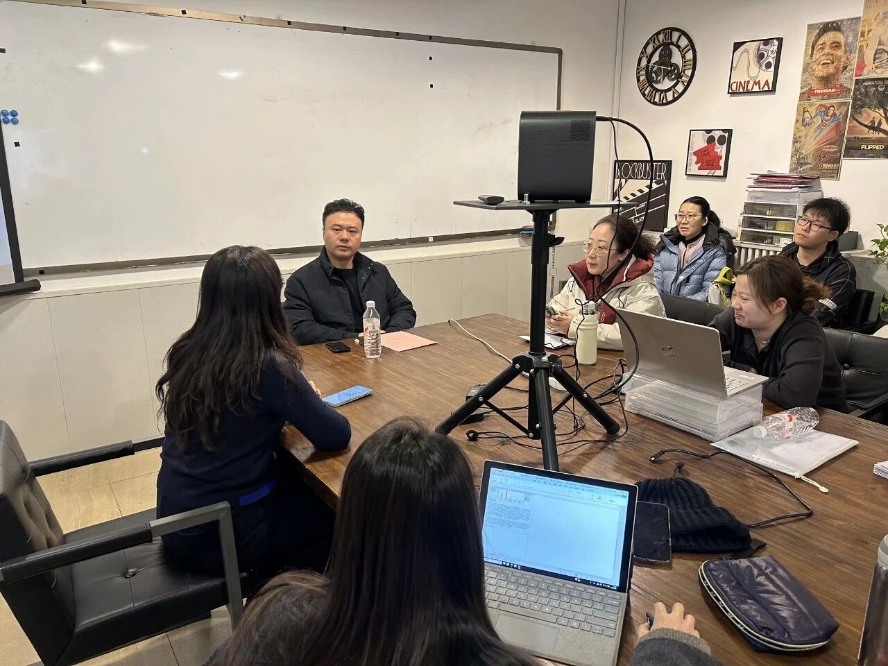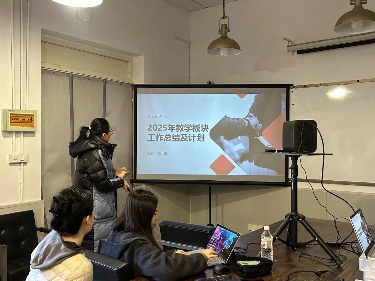 教学版块负责人贾云霞老师率先进行汇报。2025年,教学版块革新原有教研模式,推行“大小教研+专题教研”相结合的机制,建立听课巡查制度,将教学中的问题与成果凝练成专题汇报,精准定位教研深化方向。展望2026年,版块将聚焦课程建设,完善教学资源,完成教学大纲修订工作,同时强化课堂管理,着力提升学生实践能力与成果转化效率。